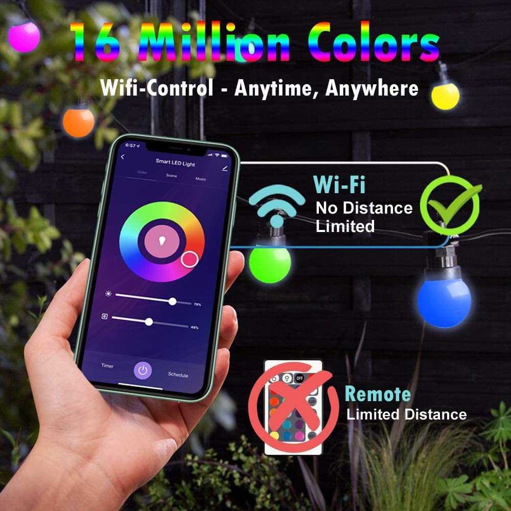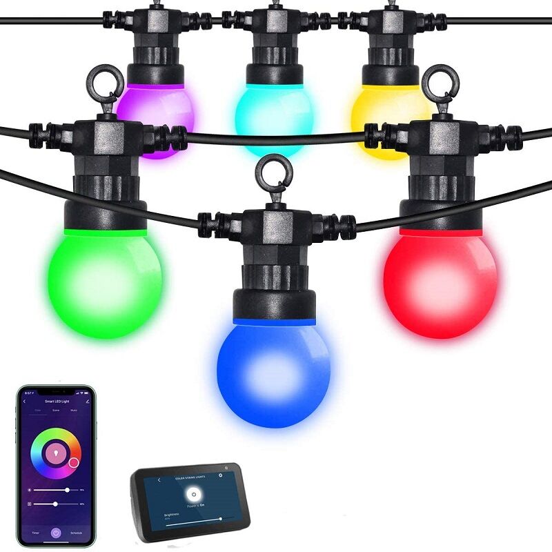 Greenautomat Wi-Fi Smart Multicolor Changing RGB Tunable White Outdoor 10-Light Outdoor String Light, No Hub Required, Voice Activated, 0017